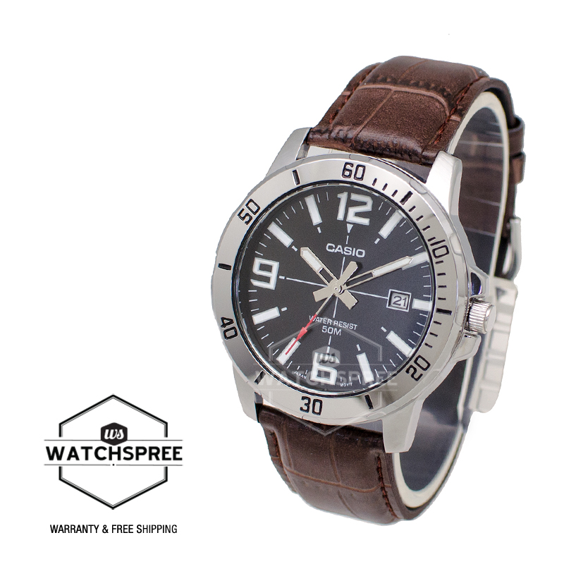 [Watchspree] Casio Men's Diver Look Dark Brown Leather Strap Watch MTPVD01L-1B MTP-VD01L-1B|,|