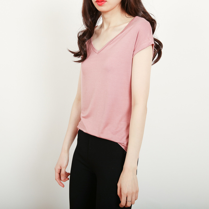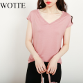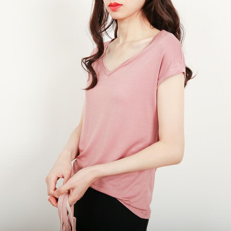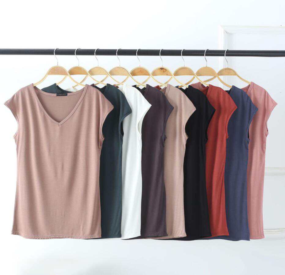 WOTTE Bamboo Fiber T Shirt for Women Home Wear Summer Sleeveless Shirt V-neck Top Plain White Pink Modal Cotton Ladies Slim Tshirt Korean Style|,|