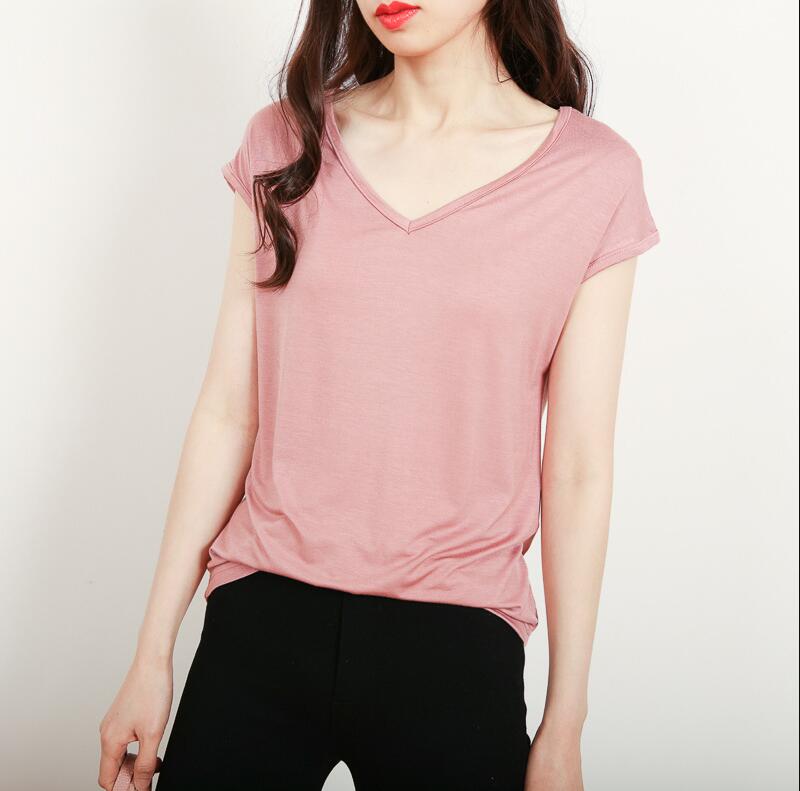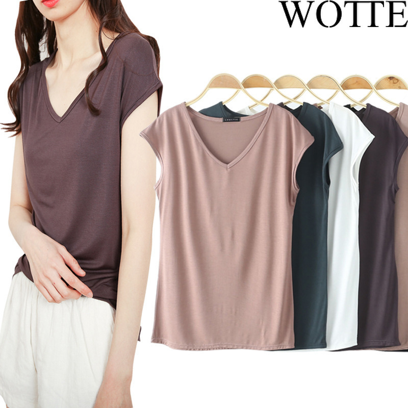 WOTTE T-shirts for Women Home Wear Base shirt Sleeveless Shirt Bamboo Fiber V-neck Top Ladies Slim T shirt Korean Style|,|